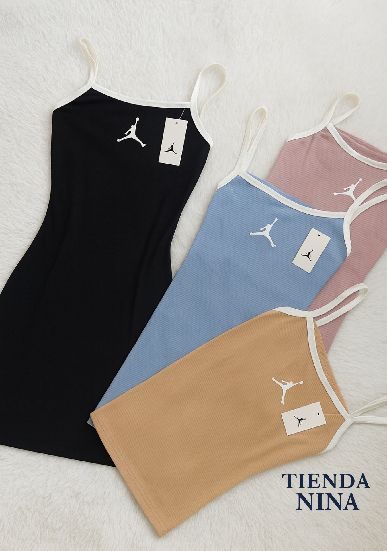 Vestido deportivo urbano inspirado en la línea Jordan, con un look casual sofisticado y referencias visuales al mundo del street-basket style.